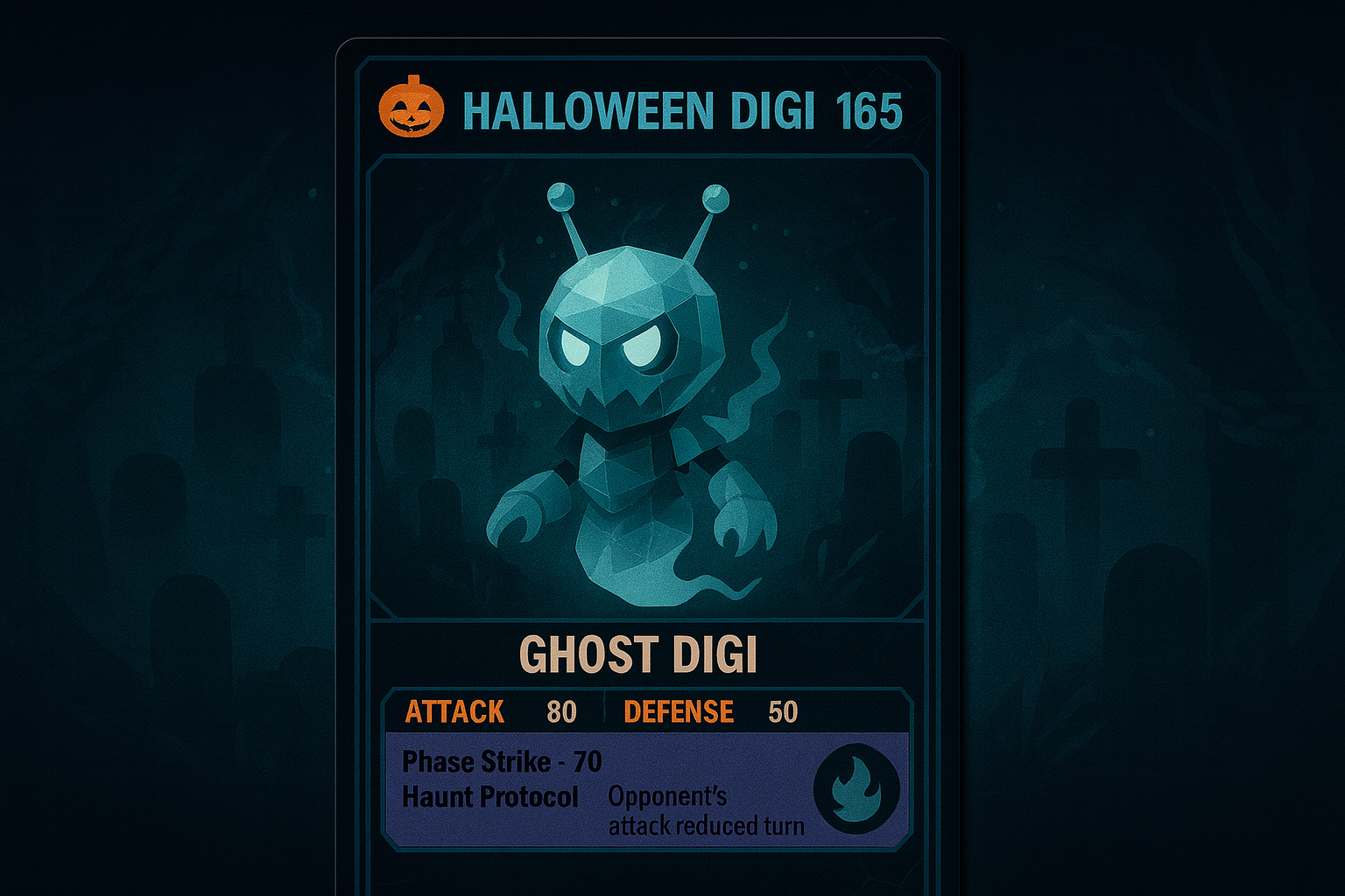 In the greater Spookyverse, Ghost Digi serves as the messenger between realms β the only one capable of slipping through the firewall that separates the living code from the dead.