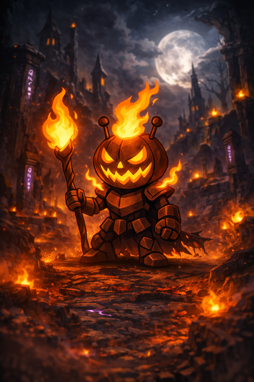 As Pumpkin Sentinel, he becomes the physical manifestation of what happens when flame is rewritten instead of extinguished.